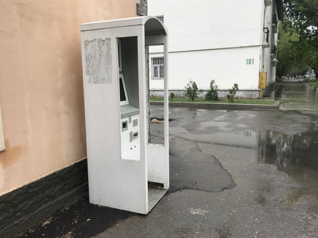 Ich lief also zu weit. Es begann zu regnen und ist stand klatschnass geschwitzt und verregnet an irgendeiner Kreuzung. Meine letzten Prozente Handyakku halfen mir andere Foren zu durchforsten – ohne den Spezial-VPN hätte ich schon lange aufgeben müssen. Dort fand ich exakt diese Info: “Google Maps Location falsch, in der Nähe Hausnr. 101.“ (siehe Photo, am besten nach der Telefonzelle/ATM Ausschau halten) Ich lief zurück zu besagter Hausnummer, die ich auf Anhieb fand und ums Eck war ein kleines Schild. Dann, klingelte ich, die Stimme erklärte, dass die Tür offen sei. Überglücklich tritt ich ein. Jeder auf Reisen kennt das Gefühl endlich anzukommen. Dieses Hotel wurde von einigen alten turkmenischen Damen betrieben, die recht höflich waren. Das Zimmer kostete 10$, was angesicht dessen, dass alle Räume quasi aneinander geschusterte Kartons waren, eigentlich nicht allzu günstig war. Erwartungsvoll, mit Gedanken an mein Bett, waren mir die Fazilitäten egal. Genauso stelle ich mir das Interieur der Zimmer von diesen nicht verputzten Backsteinskelett-Häusern in Südamerika vor. Sämtliche Einrichtung war aus Holzresten selbst zusammengebaut. Es gab keinerlei Dichtungen, es tropfte von den Decken und es standen überall im Haus Eimer um die Tropfen aufzufangen. Das Bad war am ehesten mit einer Rastplatztoilette vergleichbar. Nein… nicht Sanifair, wo man 50c-Rabattgutscheine bekommt. Diese Toiletten an den einsamen Rastplätzen, in denen überall Spinnweben sind und die an eine Jugendherberge in dreckig erinnern. Ich war glücklich, breitete mich aus, trocknete meine Sachen und ging für ein paar Stunden schlafen.